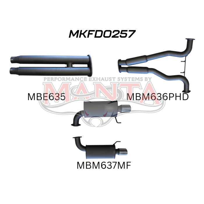 Complete Manta exhaust system, available in mandrel bent 3" tubing. Choose between a complete exhaust system with extractors (coming soon), or a "cat-back" system, replacing the last three sections of the standard exhaust.